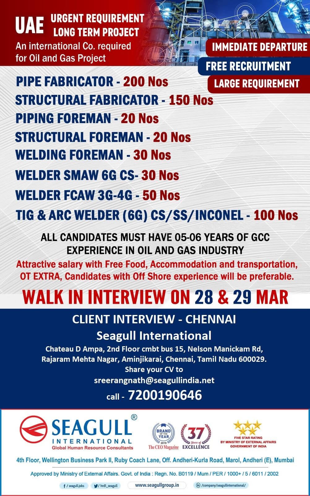 Disclaimer:- GCCWALKINS have no involvement in any recruitment process, This website just sharing job vacancies & interviews from various sources. Applicants are advised to research the bonafides of the prospective employer independently. We do NOT endorse any requests for money payments and strictly advice against sharing personal or bank related information. If you suspect any fraud or malpractice, email us at gccwalkins@gmail.com