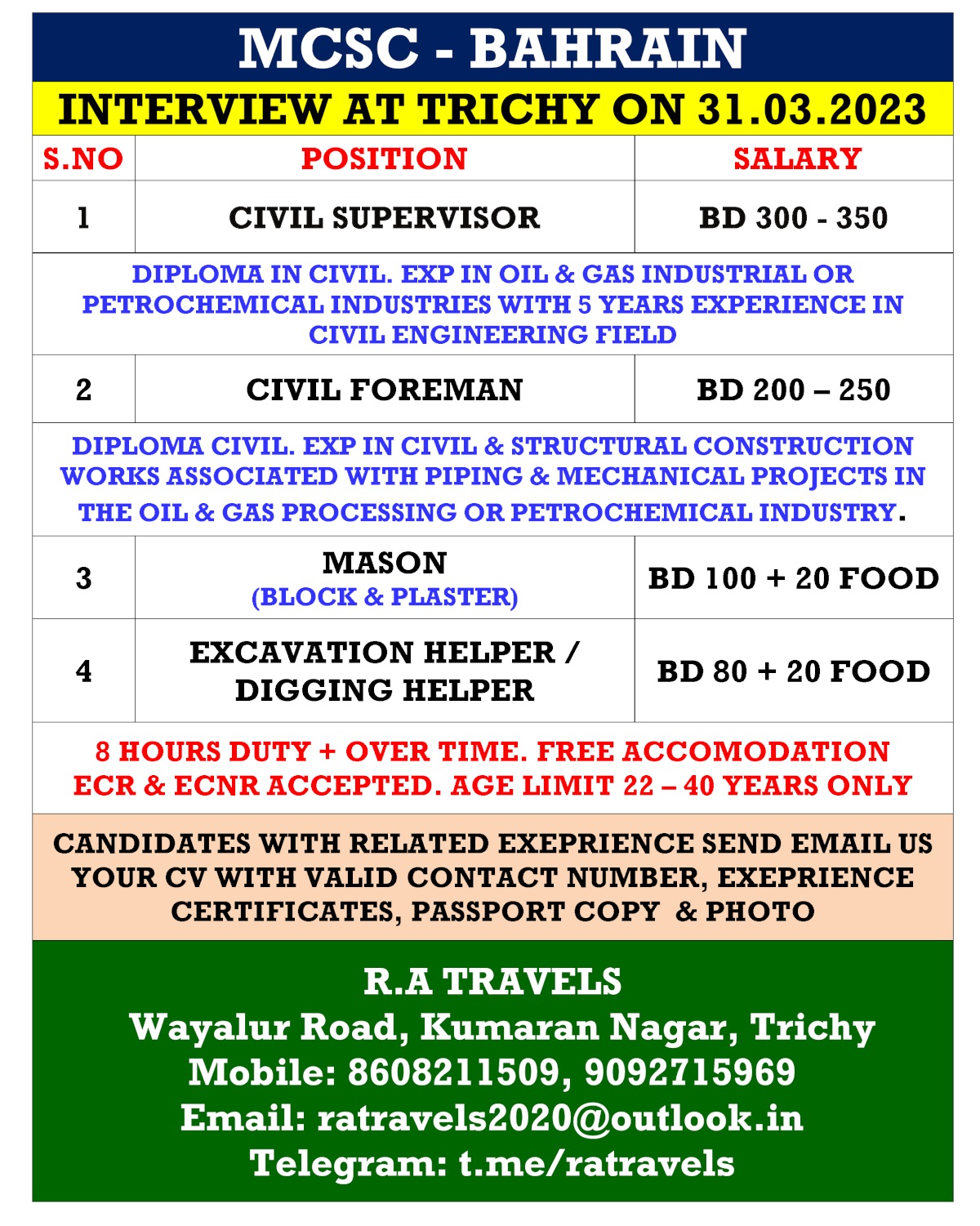 Mcsc Bahrain vacancy 2023 - Urgently required