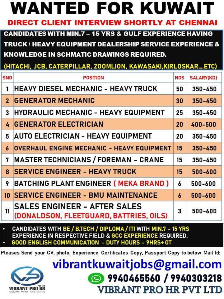 Auto electrician - heavy eqmt | 20 | 450 KWD |