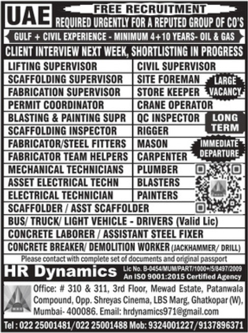 Email: hrdynamics971@gmail.com / 022 25001481, 022 25001488, 9324001227, 9137896371