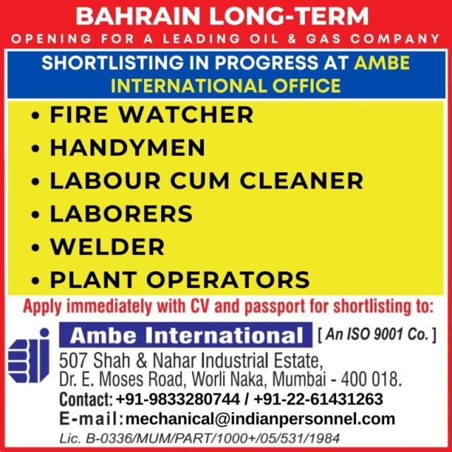 Email: mechanical@indianpersonnel.com / 9833280744, 22 61431263