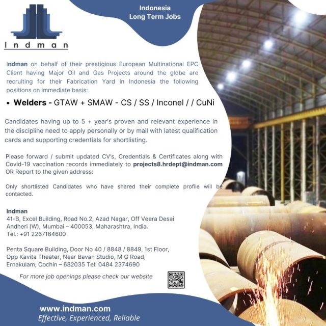 Welding jobs vacancy in Indonesia - Oil & Gas Project