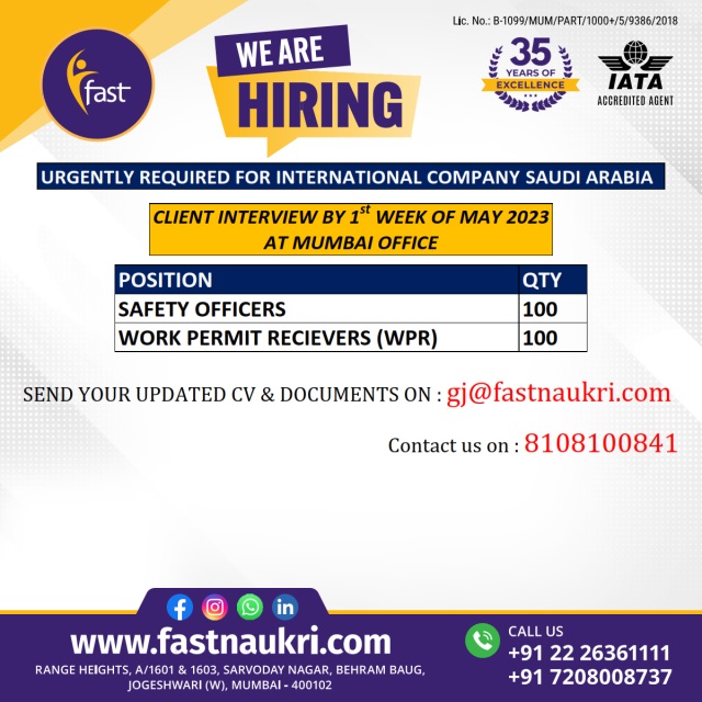 Disclaimer:- GCCWALKINS have no involvement in any recruitment process, This website just sharing job vacancies & interviews from various sources. Applicants are advised to research the bonafides of the prospective employer independently. We do NOT endorse any requests for money payments and strictly advice against sharing personal or bank related information. If you suspect any fraud or malpractice, email us at gccwalkins@gmail.com