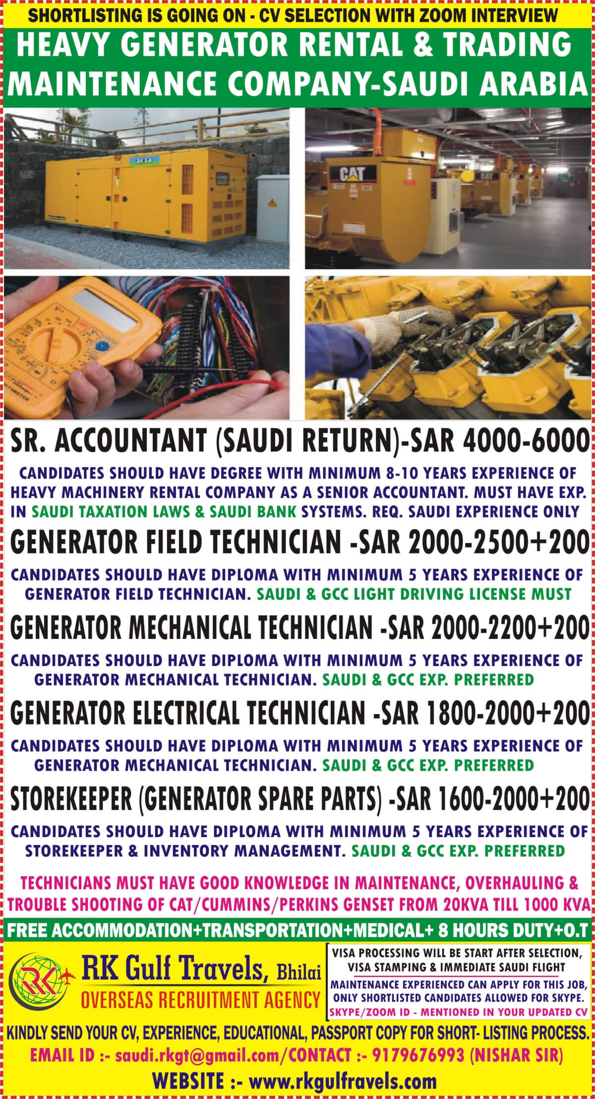 Company: Heavy generator rental & trading maintenance company, Saudi arabia