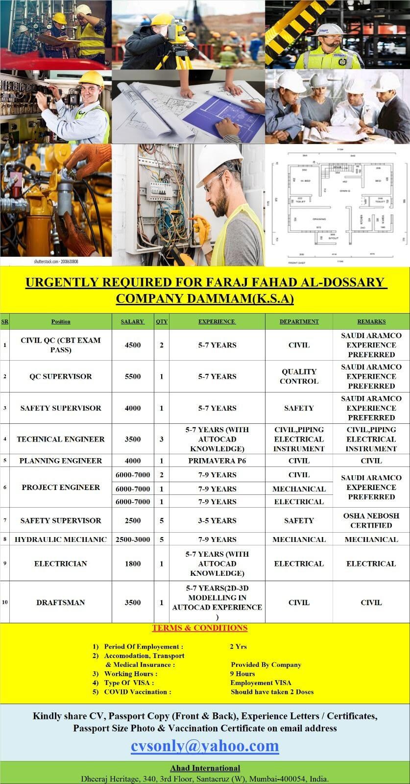 Faraj Fahad Al-Dossary Contracting Company jobs - Large recruitment