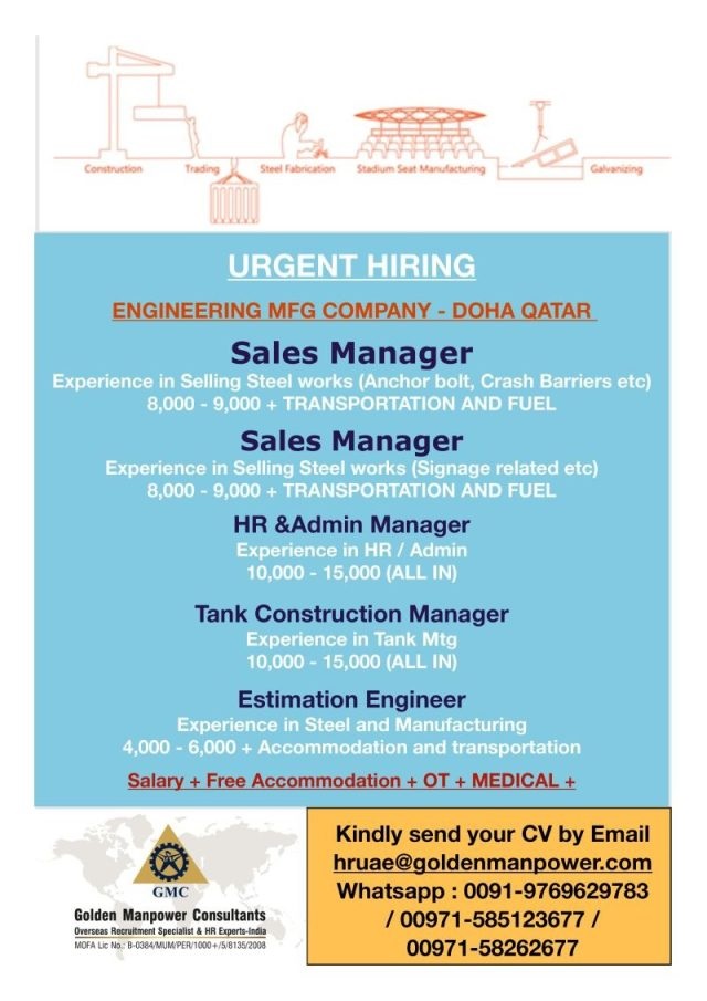 | Sales manager (steel works) | 9000 QAR | |