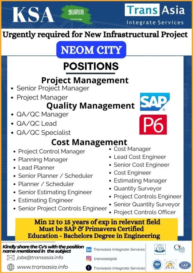 NEOM city Saudi Arabia jobs 2023 - Infrastructure Project