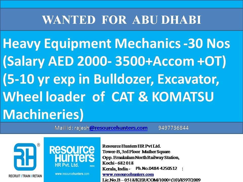 Heavy equipment mechanic job urgent - Hiring for Abu dhabi