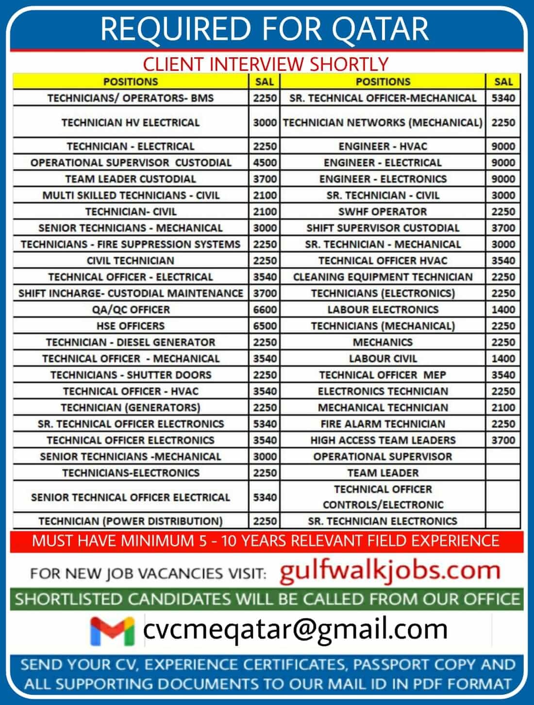 | Electronics Technician | 2250 QAR | |