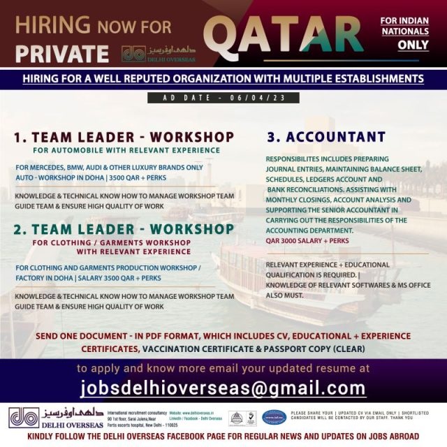 | Team leader - workshop (automobile) | 3500 QAR | |