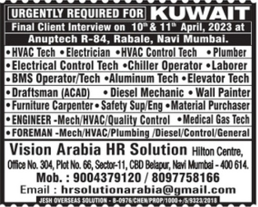 Disclaimer:- GCCWALKINS have no involvement in any recruitment process, This website just sharing job vacancies & interviews from various sources. Applicants are advised to research the bonafides of the prospective employer independently. We do NOT endorse any requests for money payments and strictly advice against sharing personal or bank related information. If you suspect any fraud or malpractice, email us at gccwalkins@gmail.com