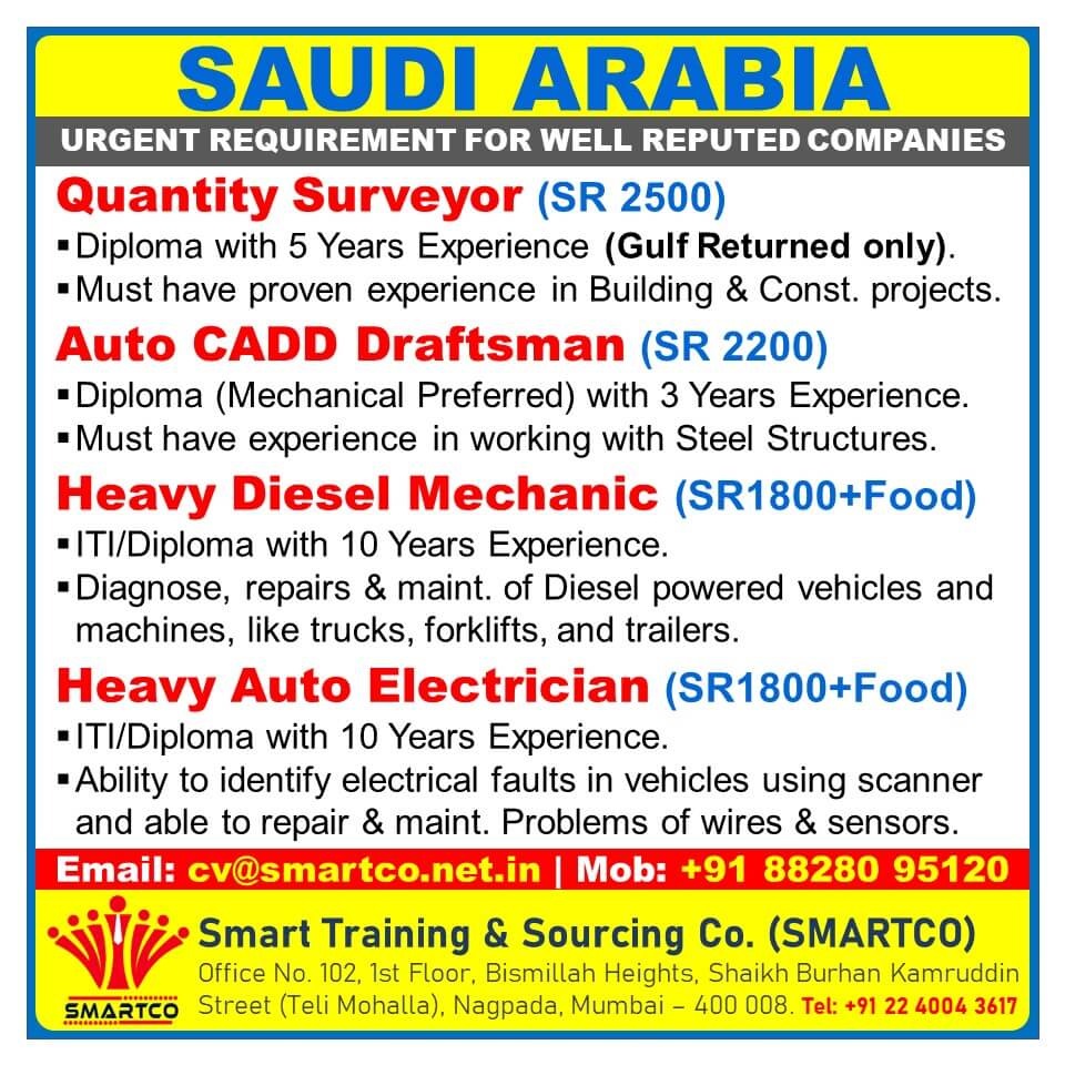 Urgent requirement for Saudi arabia