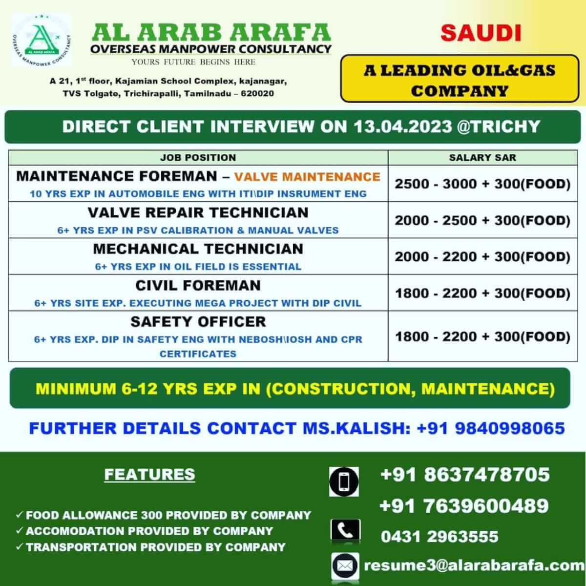 Wanted for Saudi arabia - Oil & Gas Company