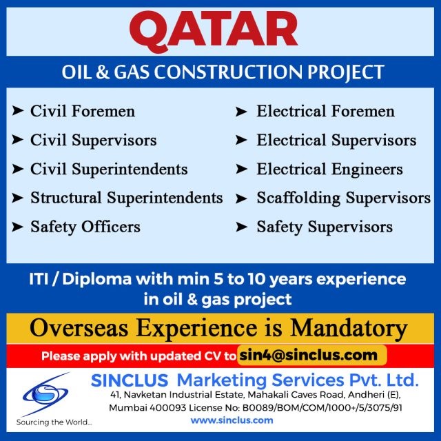 Candidates must have minimum 5 - 10 years experience in oil & gas project