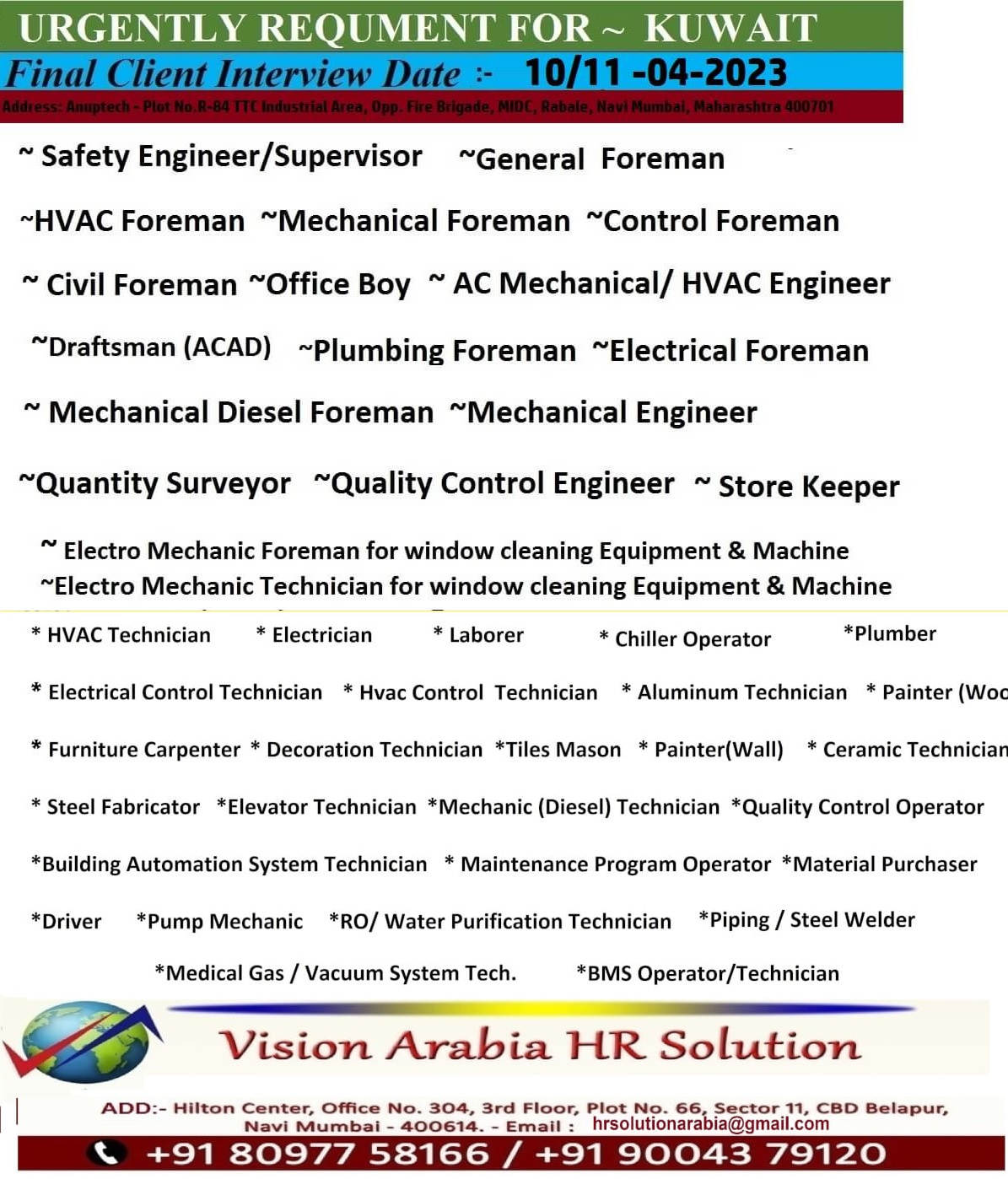 Email: hrsolutionarabia@gmail.com / 8097758166, 9004379120