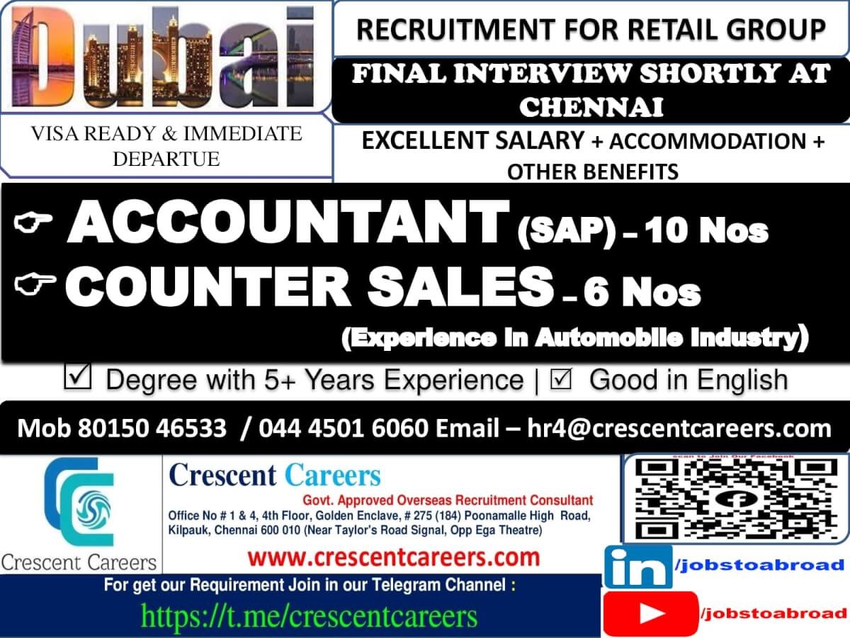 Email: hr4@crescentcareers.com / 8015046533, 044 45016060
