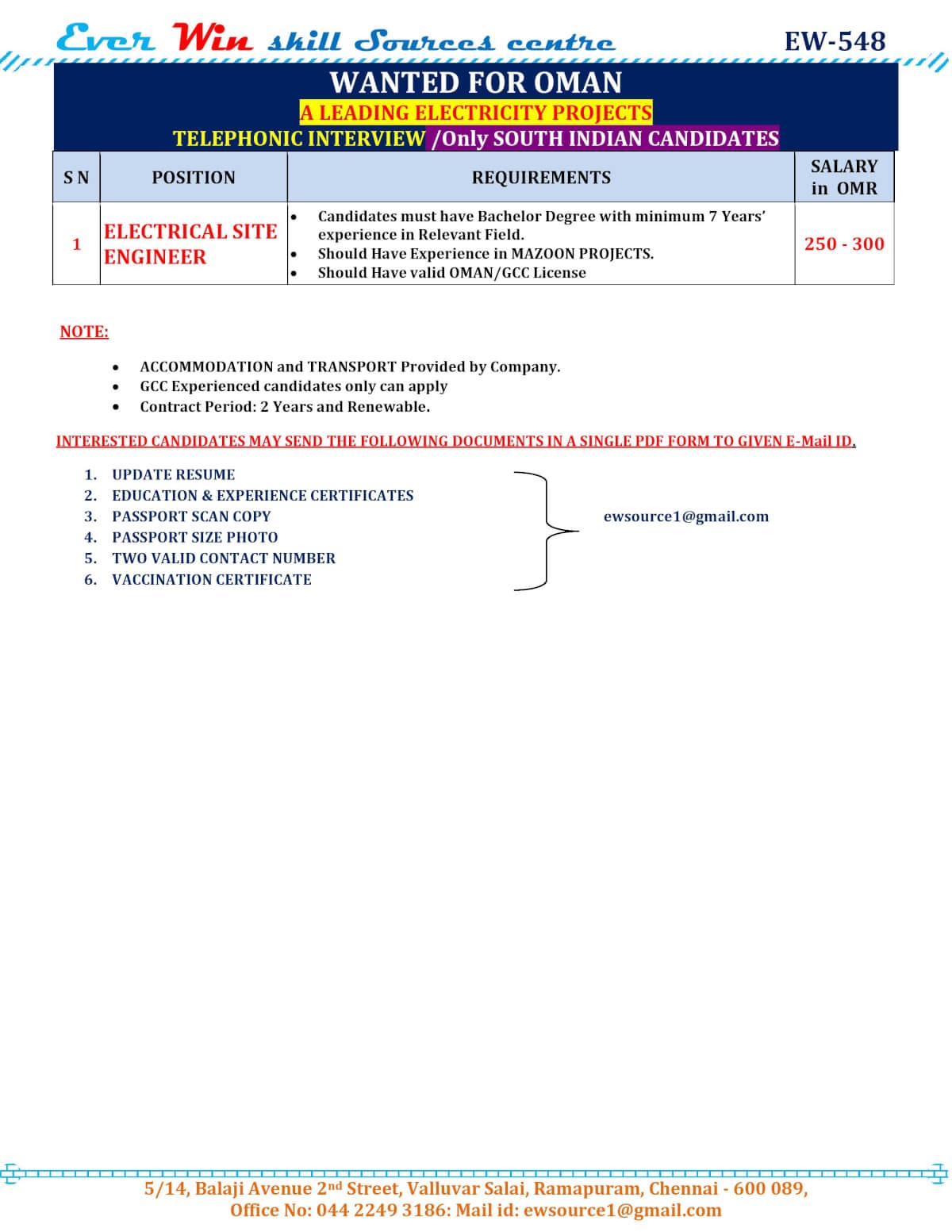 Only South Indian Candidates, GCC experineced candidates only can apply.