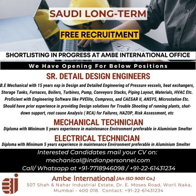Email: mechanical@indianpersonnel.com / 7718946098, 22 61431234