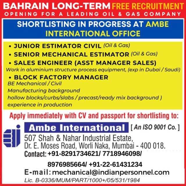 Email: mechanical@indianpersonnel.com / 8291734621, 7718946098, 8976985664, 22 61431234