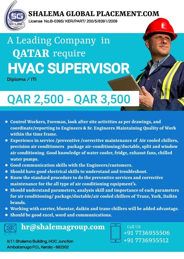 | HVAC Supervisor | 3500 QAR |