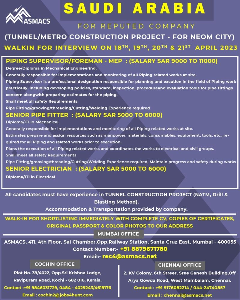 | Piping Supervisors/Foreman - MEP | 11000 SAR | |