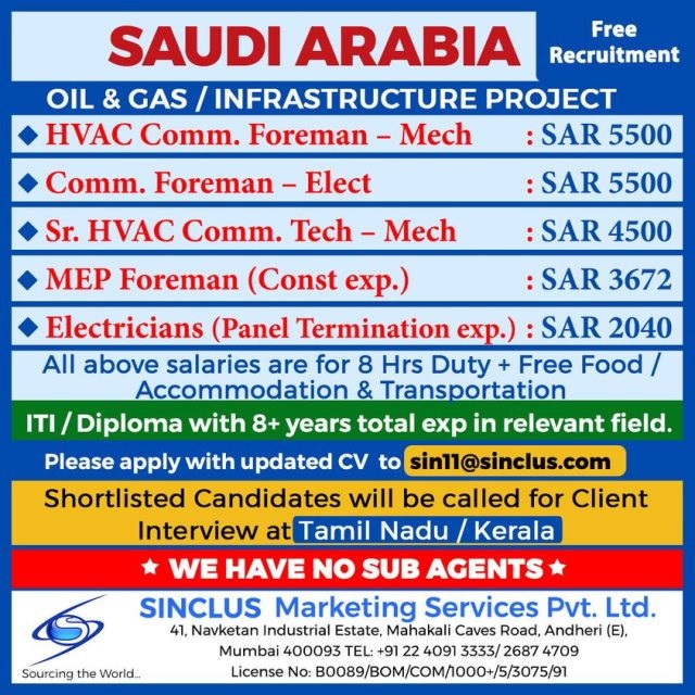 Oil & Gas Project - Free recruitment to Saudi Arabia