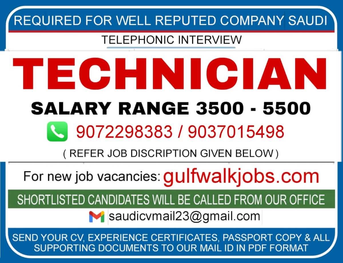 Technician Jobs in Saudi Arabia - Telephonic Interview