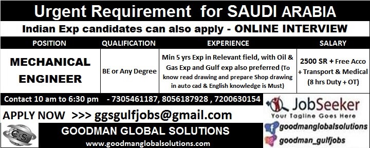 Mechanical engineer job vacancy in Saudi Arabia