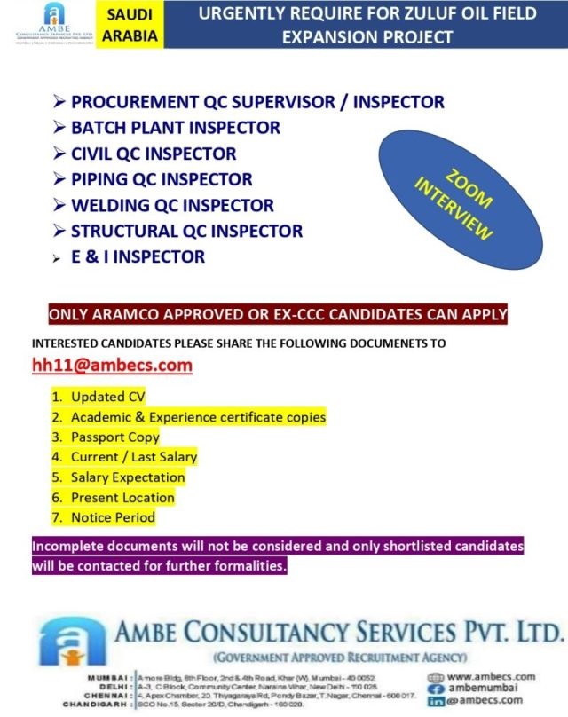 Only Aramco Approved or Ex-CCC Candiates can apply