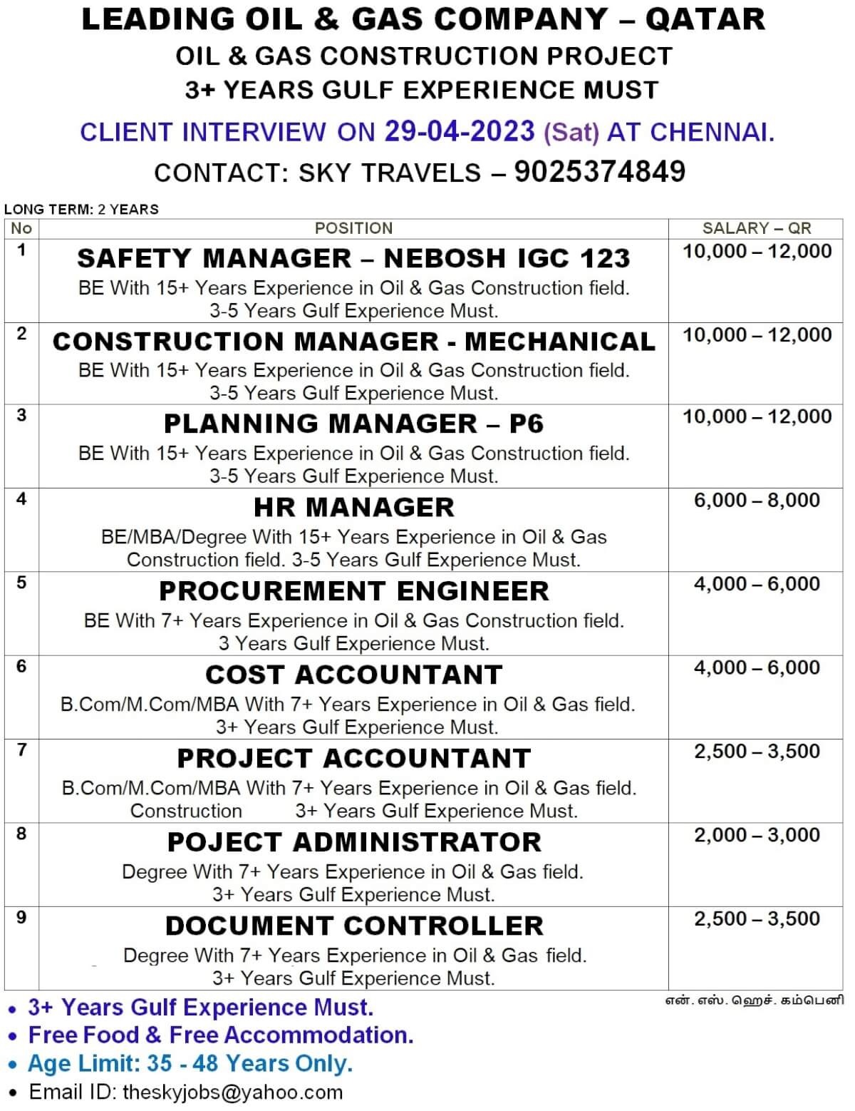 All Candidates having 3+ experience in relevant similar industry need to apply. Age Limit 35 - 48 years only