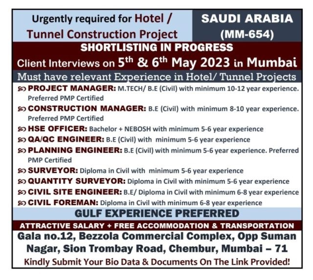 Tunnel Construction Project - Hiring for Saudi Arabia