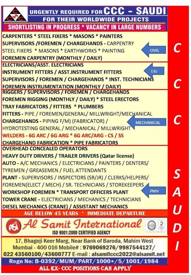 CCC Company jobs 2023 - Large recruitment to Saudi arabia
