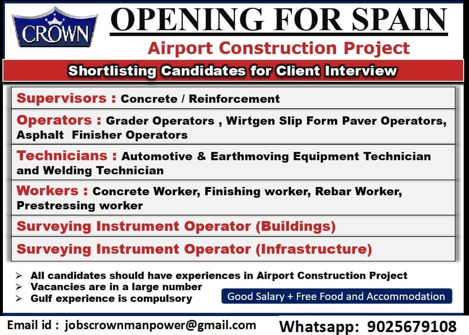 Jobs in Spain for Indian - Airport Construction Project