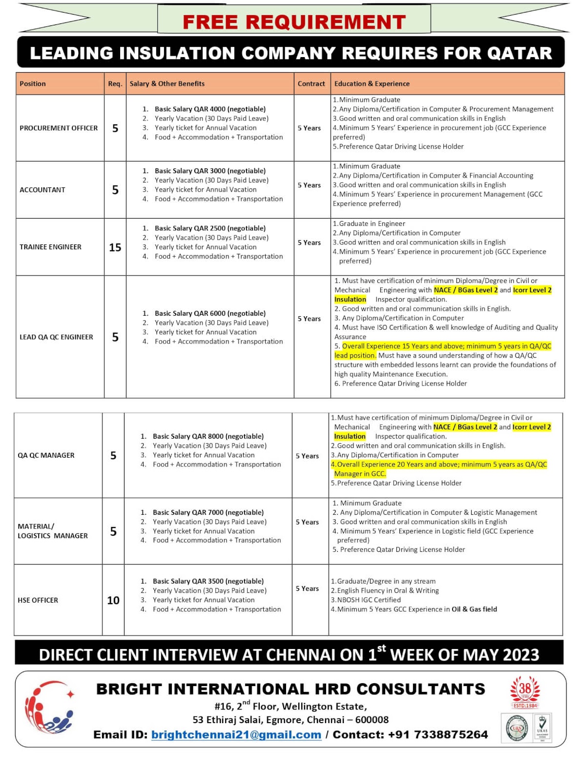 | Lead QA QC Engineer | 05 | 6000 QAR |
