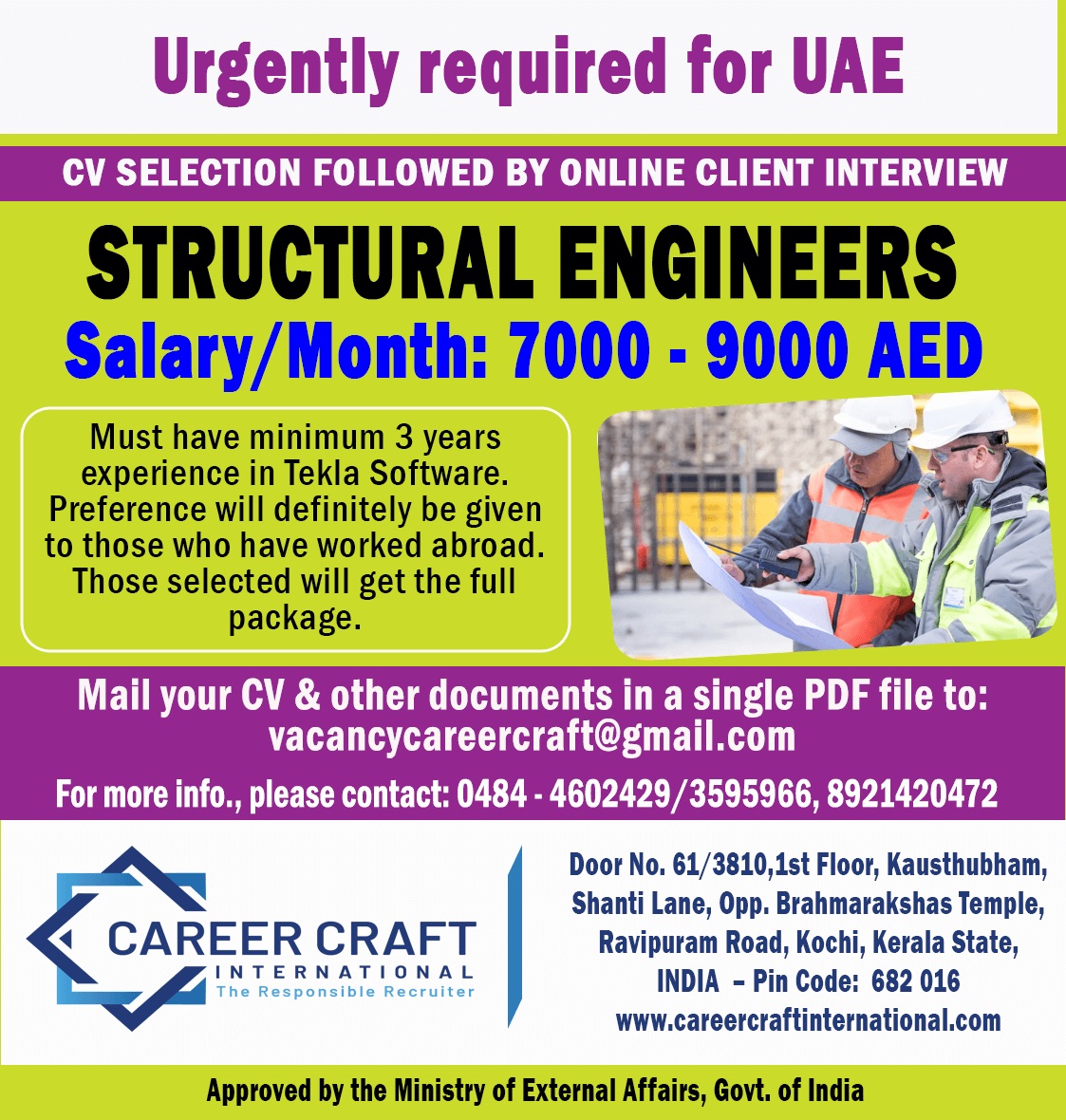 Email: vacancycreercraft@gmail.com / 0484-4602429, 3595966, 8921420472