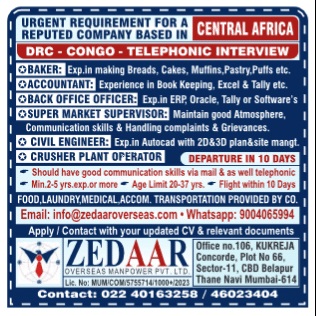 Email: info@zedaaroverseas.com / 022 40163258, 46023404, 9004065994