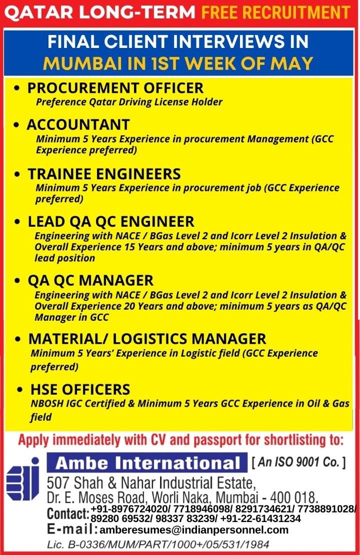 Email: amberesumes@indianpersonnel.com / 022 61431234, 7738891028, 7718946098, 8291734621, 8928069532, 9833783239, 8976724020