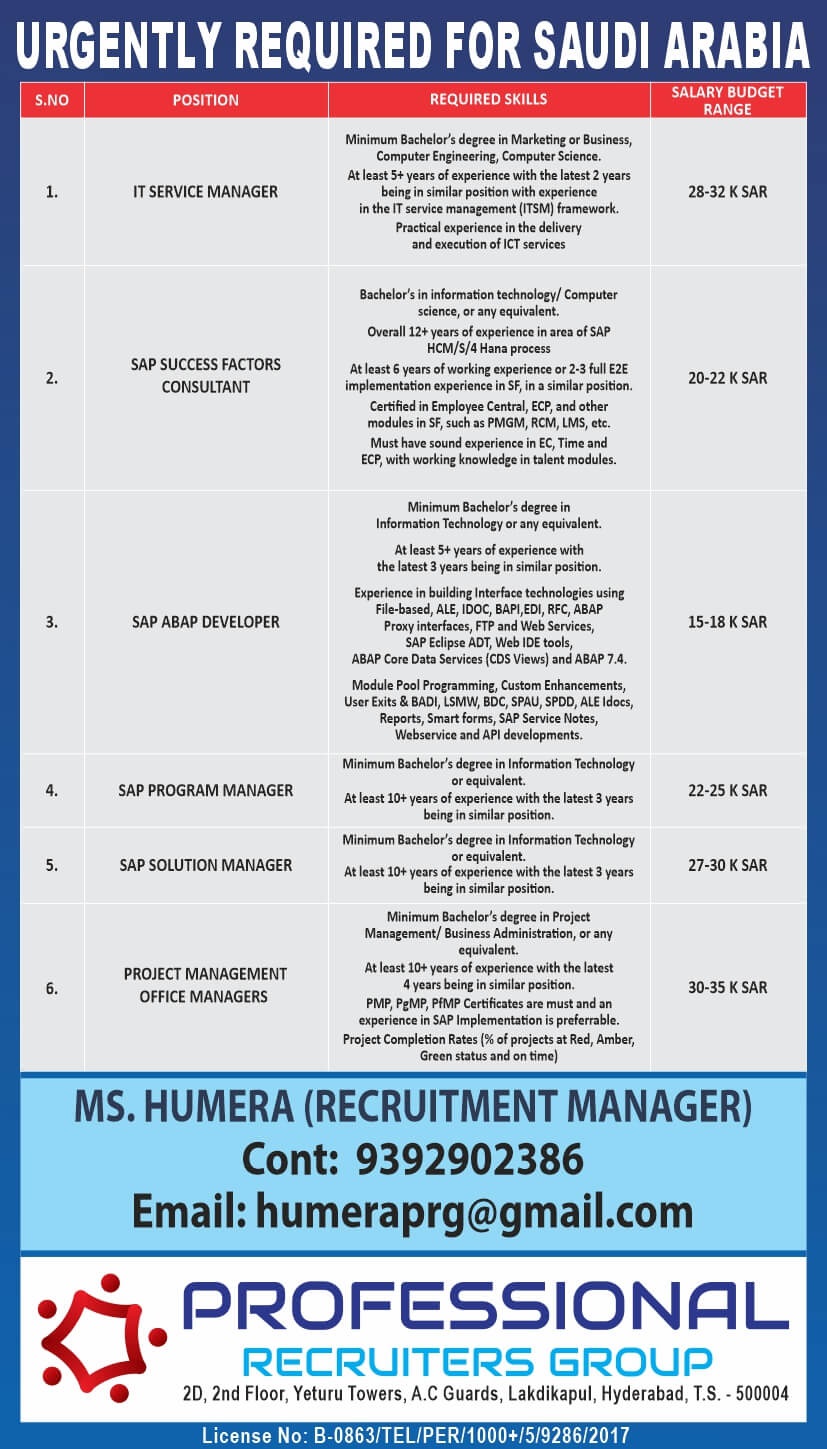 Email: humeraprg@gmail.com / MS. Humera (Recruitment Manager) / 9392902386