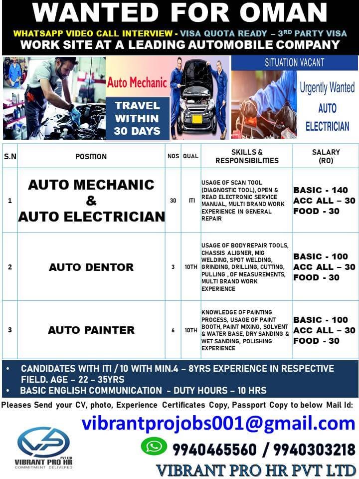 Auto Mechanic & Auto Electrician | 30 | 200 OMR |