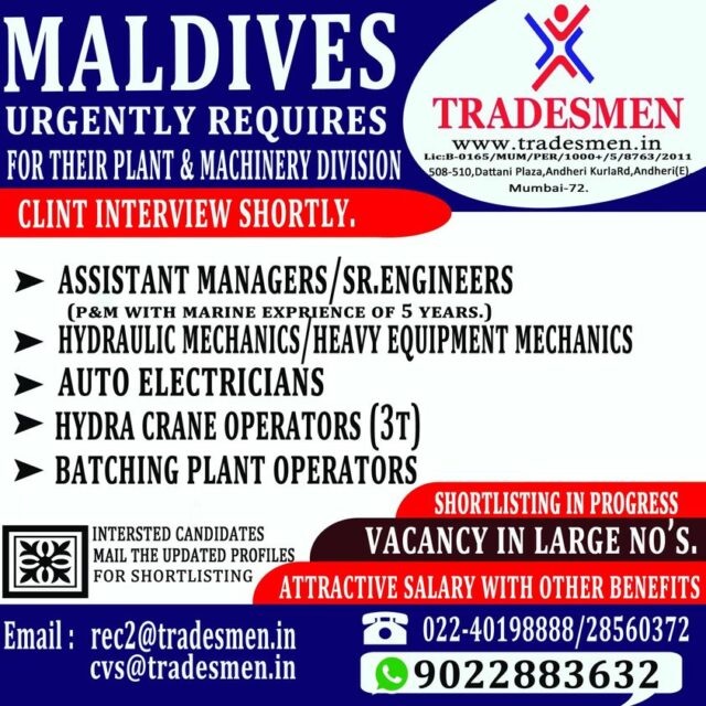 Email: rec2tradesmen.in / cvs@tradesmen.in / 022-40198888, 28560372