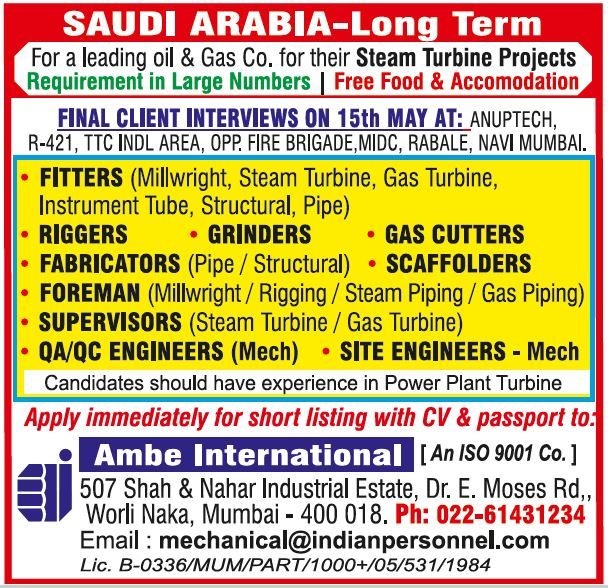 Steam Turbine Project - Recruitment to Saudi Arabia