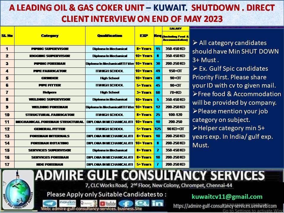 Kuwait shutdown project 2023 - Large recruitment
