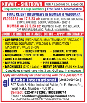 Candidates should have Min. 3 years Gulf Experience in Shutdown