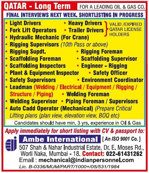 Email: mechanical@indianpersonnel.com / 022-61431262