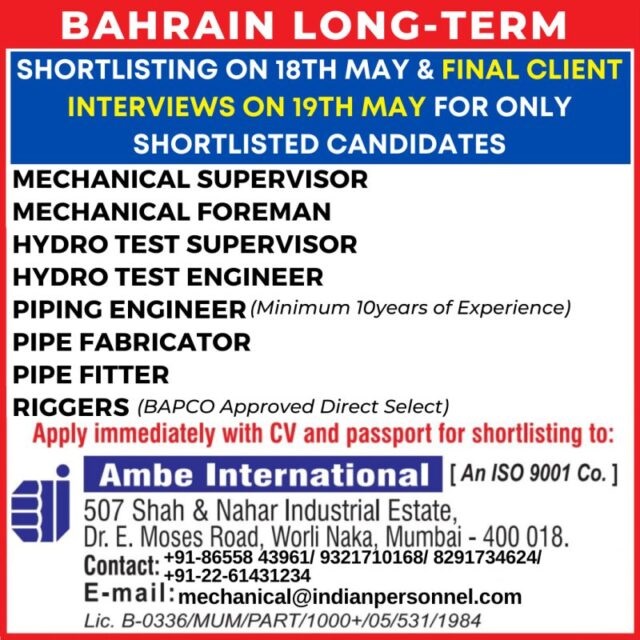 Email: mechanical@indianpersonnel.com / 8655843961, 9321710168, 8291734624, 22-61431234