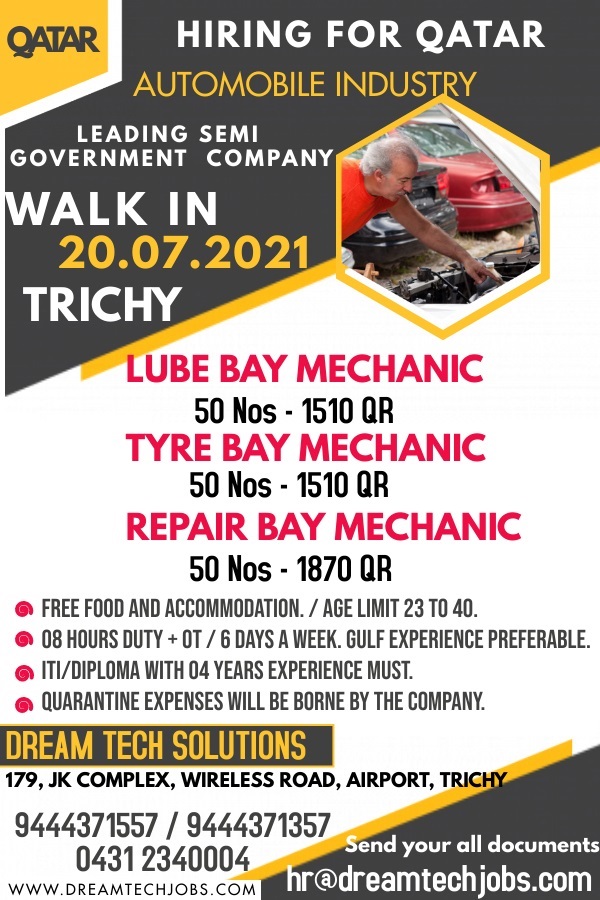 Email: hr@dreamtechjobs.com / 9444371557, 9444371357, 0431-2340004