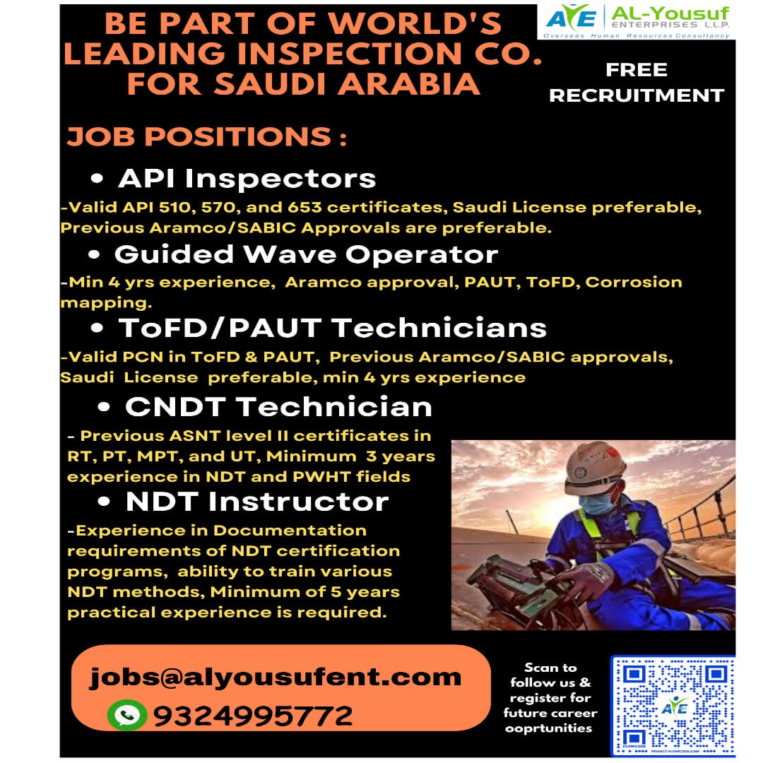 Free recruitment to Saudi Arabia - Inspection Company