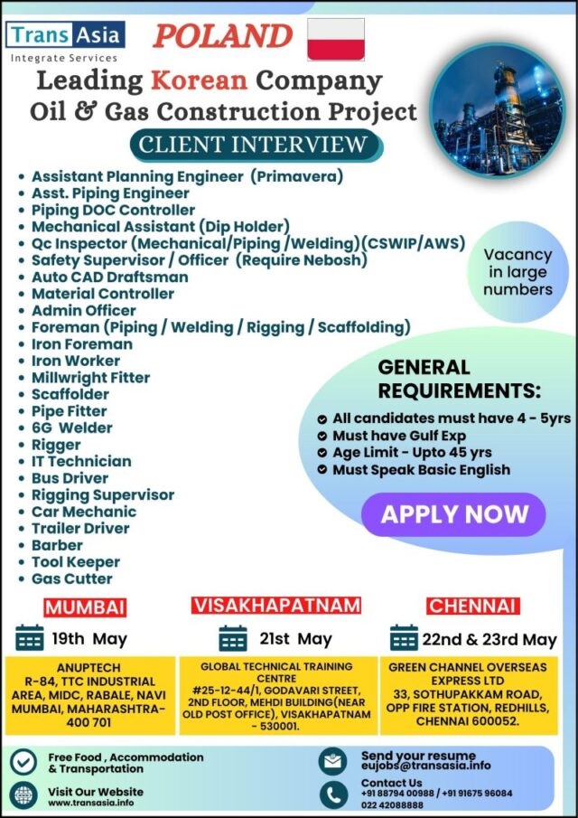 Poland job vacancy for Indian - Oil & Gas Project