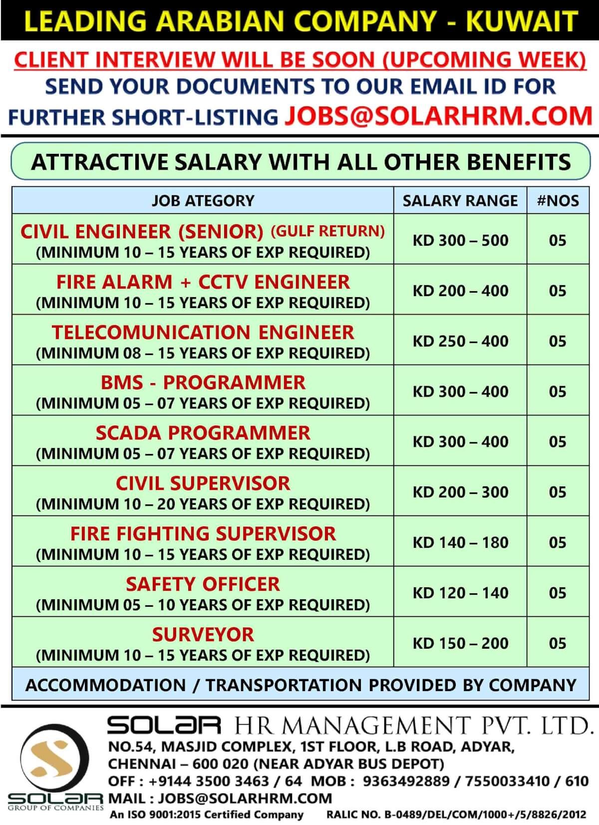 | Civil Engineer (Senior) (Gulf Return) | 05 | 500 KWD |