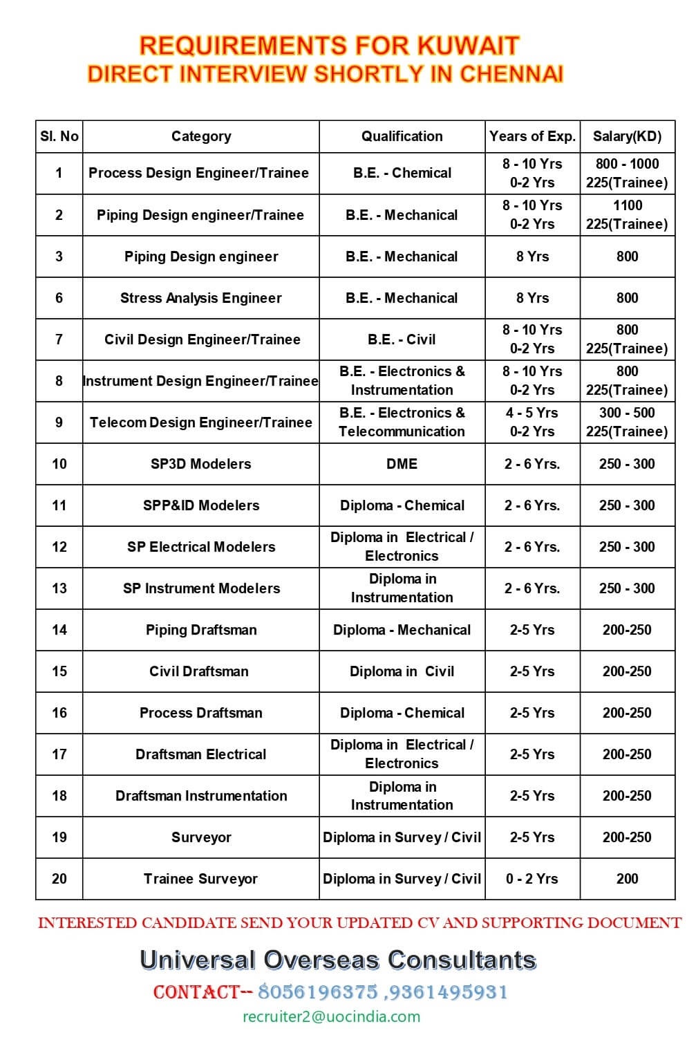 | Process Design Engineer / Trainee | 1000 KWD | |